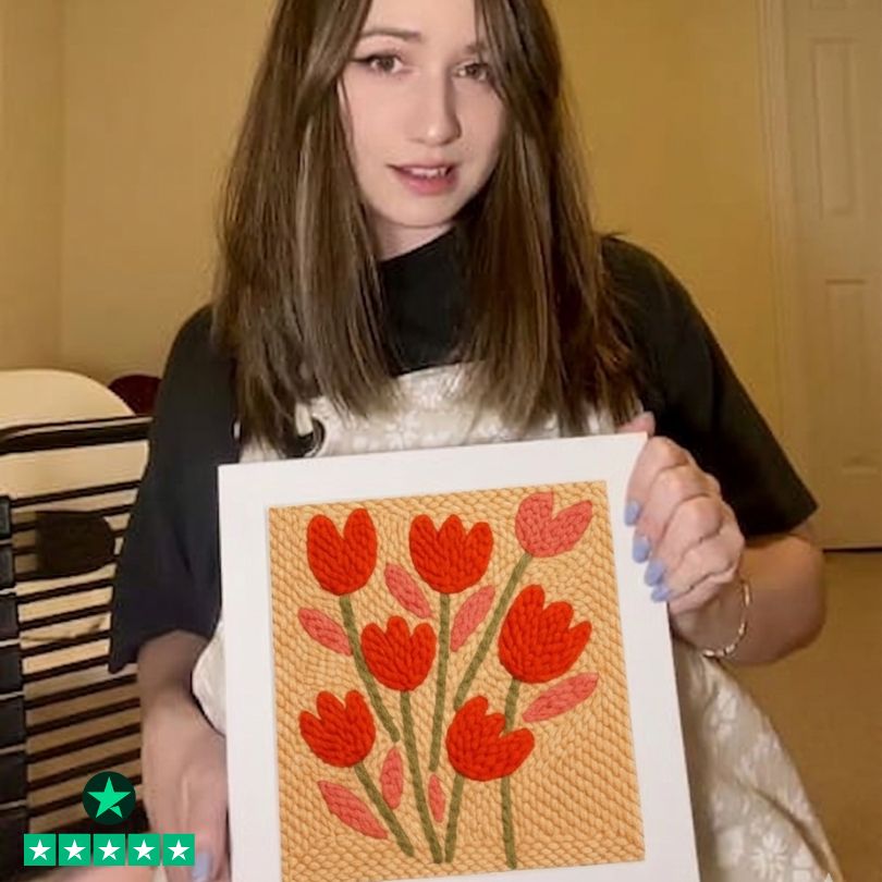 Use the included finishing pack to seal your loops permanently. Frame it, set it on the coffee table, or give it as a handmade gift that took way less time than anyone would guess.