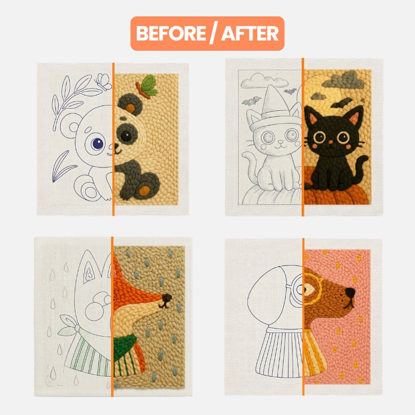 Absolutely. Punch needle is the most forgiving fiber craft — if you make a mistake, you just pull the loop out and redo it. No damage to the fabric. Our kits are designed so that someone with zero craft experience can go from unboxing to punching in under 10 minutes. The video masterclass walks you through threading, the "Yarn Slack" technique (the #1 beginner mistake), and your first stitches.